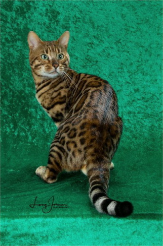 Proud we present our new stud Bengalias Morpheus. He is a big strong cat with a sugary character. He has an excellent head. Profile, shape and proportions are excellent. His short coat with the big striking rossettes is quite fantastic. We hope that Morpheus will influence our breeding program in the coming years.